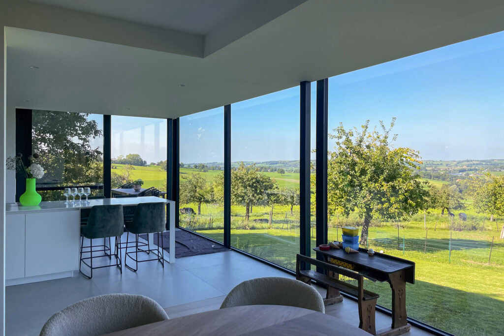 Architektonisch anspruchsvolles Wohnhaus mit mehreren Ganzglasecken