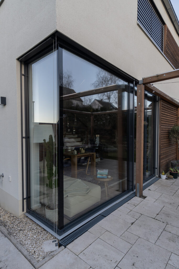 Architektonisch anspruchsvolles Wohnhaus mit mehreren Ganzglasecken